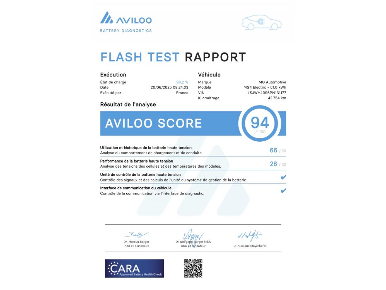 - Rapport test batterie certifié SOH (détail complet dans les photos): 94 %
