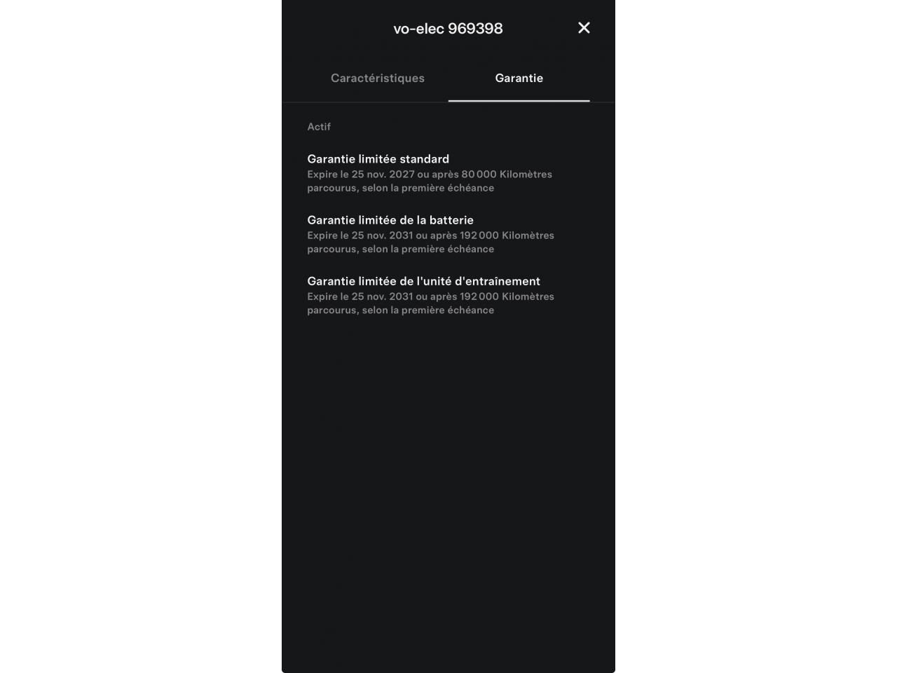 - Garantie constructeur Tesla: 25/11/2027 ou 80000 km