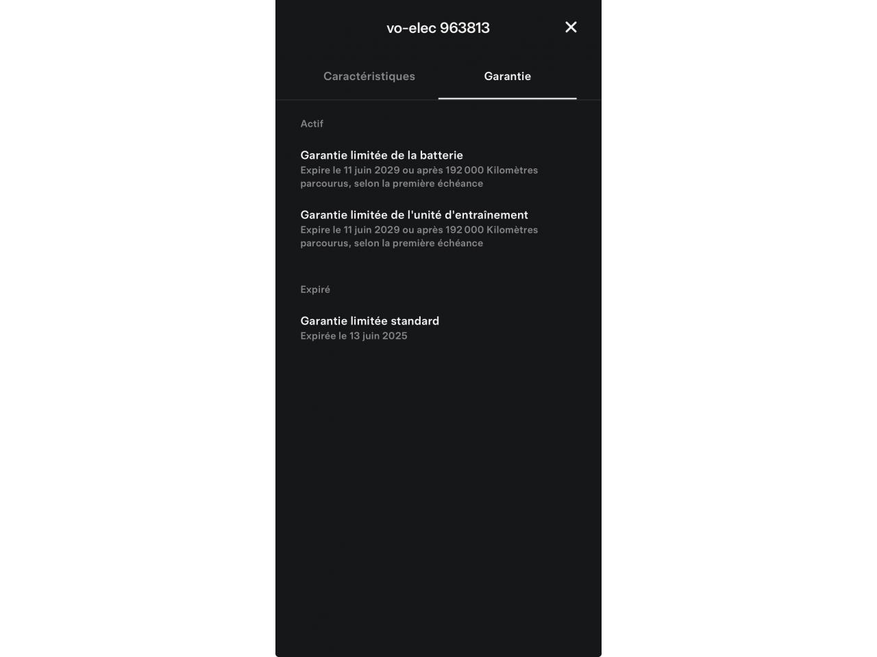 - Garantie batterie constructeur + unité d'entraînement : 11/06/2029 ou 192000 km