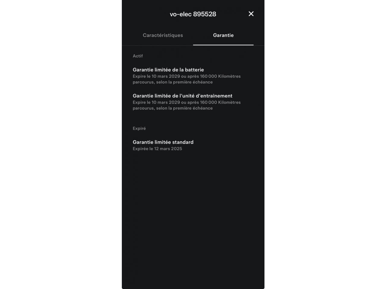 - Garantie batterie constructeur + unité d'entraînement : 10/03/2029 ou 160 000 km