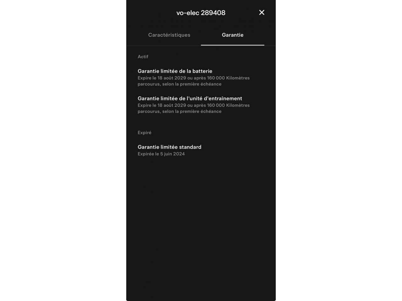 - Garantie batterie constructeur + unité d'entrainement: 18/08/2029 ou 160 000 kms