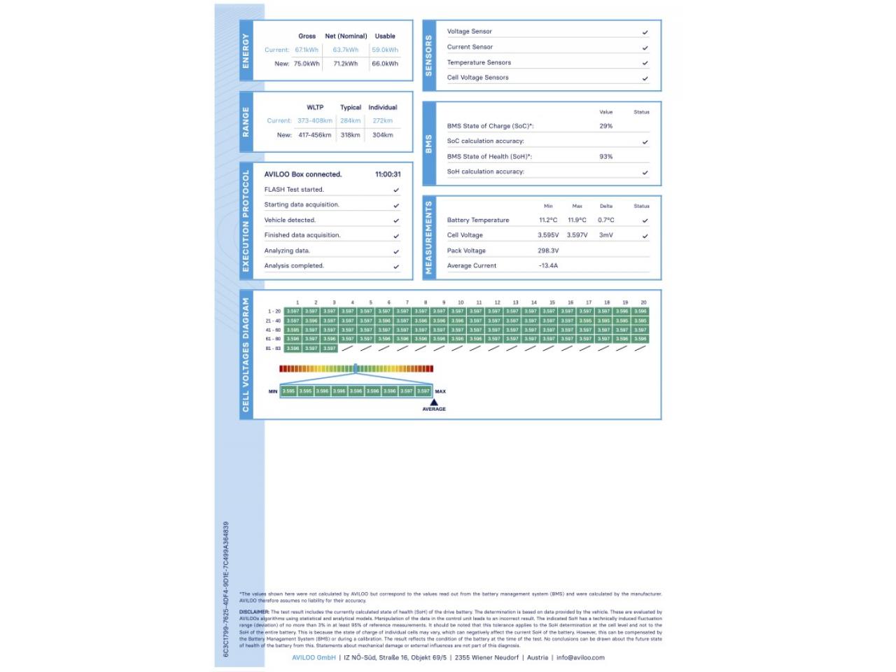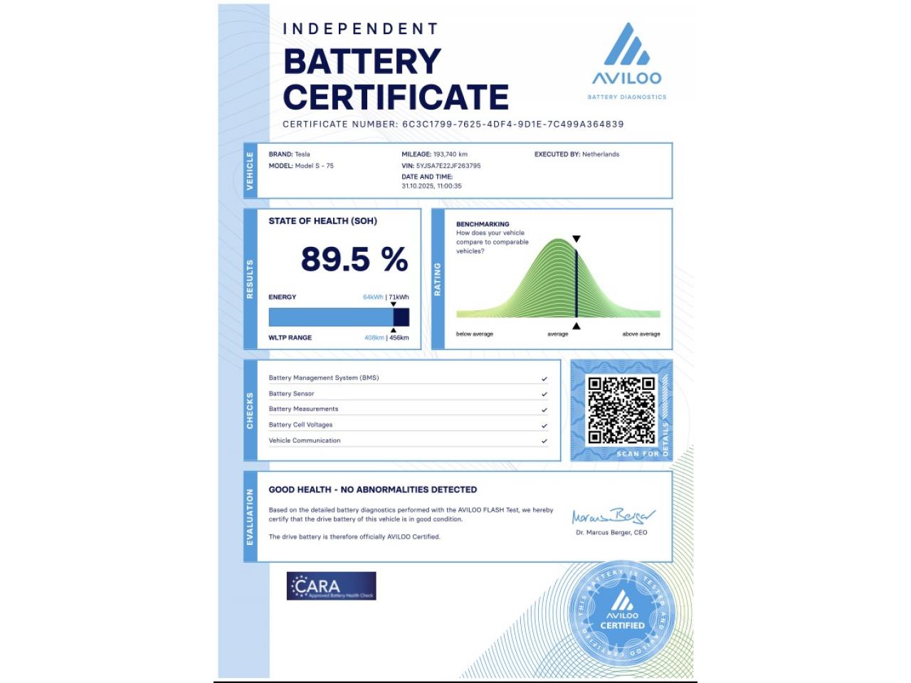 - Test batterie certifié SOH : 90 %
